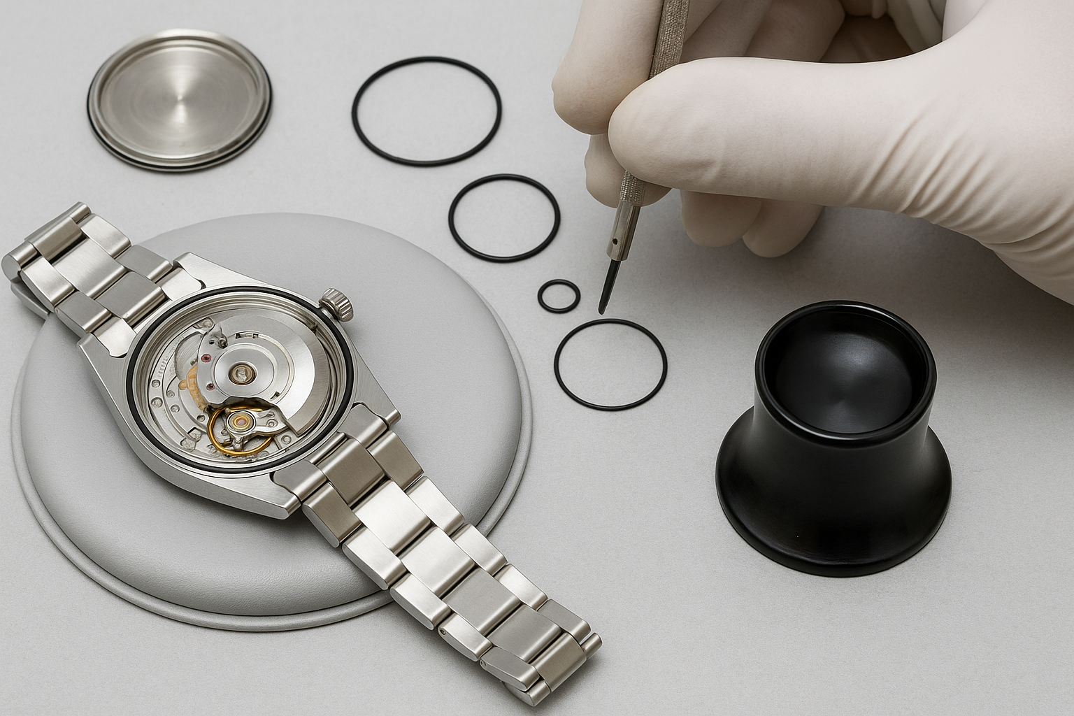 Όλες οι φλάντζες που διασφαλίζουν τη στεγανοποίηση αντικαθίστανται, ώστε το ρολόι να παραμένει πλήρως προστατευμένο από υγρασία και νερό.